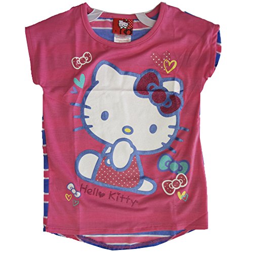 Simply adorable, great summery short sleeved top for your little girl from Hello Kitty! Cozy, soft fuchsia tee with striped pattern on the back, it is embellished with a cute Kitty applique and also heart and bow print. The T-shirt reveals the famous motif inspired by the well known cartoons. Made from quality material 100% cotton.Feature