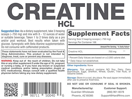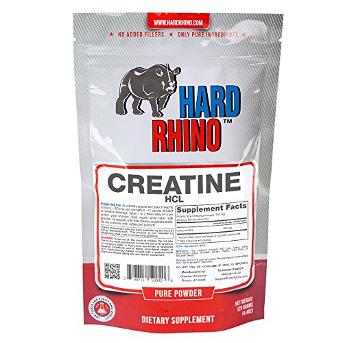 -. Title : Hard Rhino Creatine HCL Powder, 125 Grams (4.4 Oz), Unflavored, Lab-Tested, Scoop Included