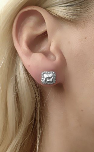 -. Title : 11mm Unique Elegant Geometric Square Shape Silver Stud Post Earrings