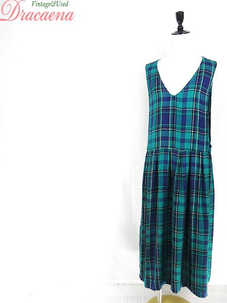Ladies ブランド- カラー緑・紺 メール便不可 コンディション★★★ 素材レーヨン 表記サイズM スタッフコメント全体に小さい糸の出があります。 実寸サイズ 着丈 109 cm 身幅 45 cm 肩幅 32 cm ウエスト 37 インチ( 94 cm) ※ウエスト・ヒップ以外は平置き採寸