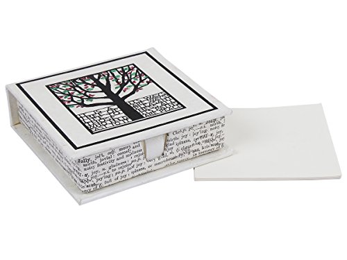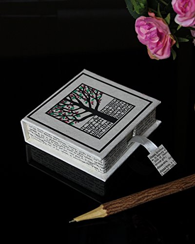 Handmade Eco-Friendly Pages Slip Pad Box Hand painted With Tree Of Life Motif and Matching Ribbon Visiting Card Holder Box Case For Home Office Display Desk Accessories