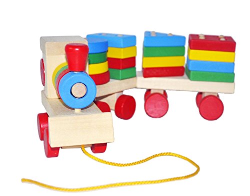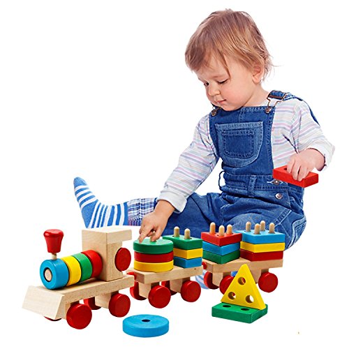Product Description: Lewo Wooden Train Sets, made of solid wood, this Stacking Train combines the benefits and fun of block play with toddlers' love of trains and things that move.