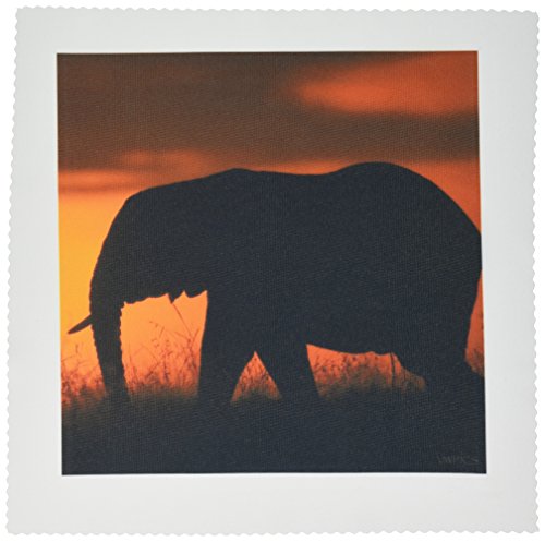 3dRose qs_45659_4 African Elephant Silhouetted Against The Sky at SunsetSerengeti National Park, Tanzania-Quilt Square, 12 by 12-Inch