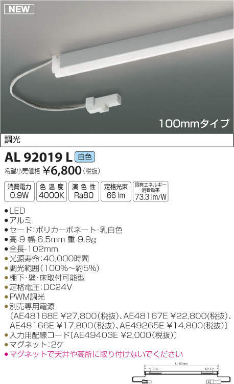 ●別売専用電源〔AE48168E \27,800(税抜)、AE48167E \22,800(税抜)、AE48166E \17,800(税抜)、AE49265E \14,800(税抜)〕