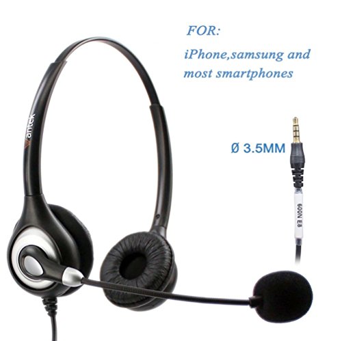 Arama Wantek Headset with Noise Canceling Boom Mic and Adjustable Fit Headband for iPhone, Samsung, LG, HTC, Blackberry, Huawei, ZTE Mobile Phone and Smartphones with 3.5 mm Jack