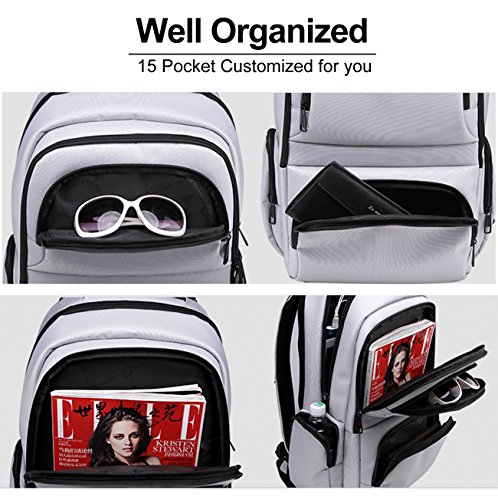 -. Feature : Fits most 14"-17" laptops,and 8"-12" Tablet / 15 Pocket Laptop Backpack help you organized stuff / Dual-Zippers+Digit Lock make your laptop more safer / High-End Water Resistant Nylon Fabric is Durable and Easy to clean / 45L/100lb Loading,High Quality Lining,any quality problem, please contact us directly.