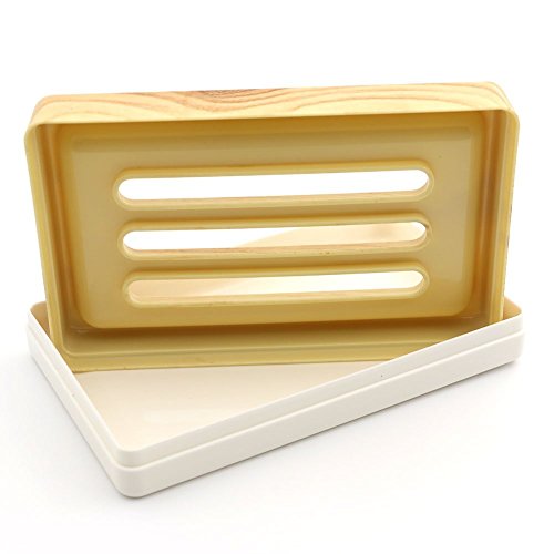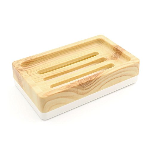 Uviviu PP Soap Box,Containers, Keeps Soap Dry,Easy Cleaning,Drain,Wood Color