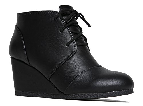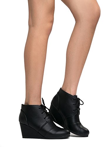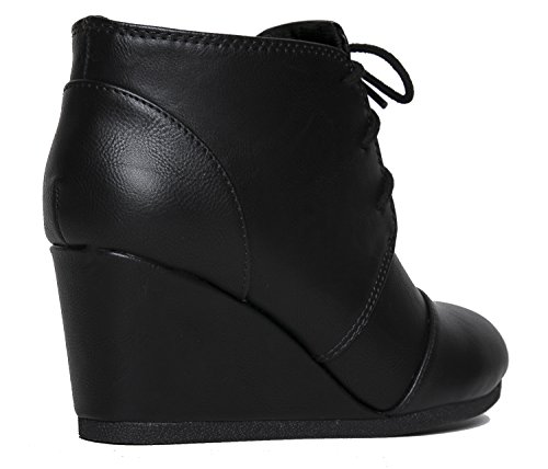 | Wedge Ankle Boot - Low Heel Bootie - Casual Comfortable Lace Up Heel - Fashion Short Heeled Wom... |