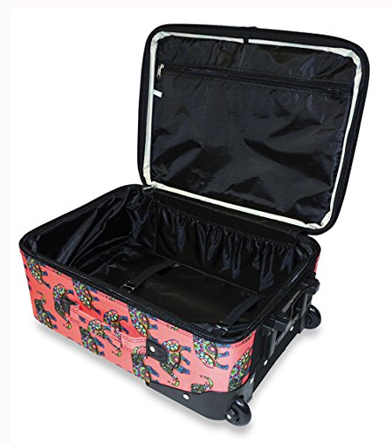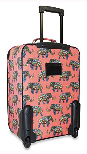 -. Brand : Ever Moda -. Color : Indian Elephant - Pink -. Department : womens -. EAN : 0605734630525 -. Feature : 2 Exterior Front Pockets / Rolling wheels and pop up handle for smooth rolling / Expandable / Top and side carry handles / Interior compression straps to keep contents in place -. Model : NEL9120 -. PackageQuantity : 1 -. ProductGroup : Apparel -. ProductTypeName : LAGE -. Size : One Size -. Title : Ever Moda Pink Indian Elephant 20-inch Expandable Carry On Rolling Lage -. UPC : 605734630525