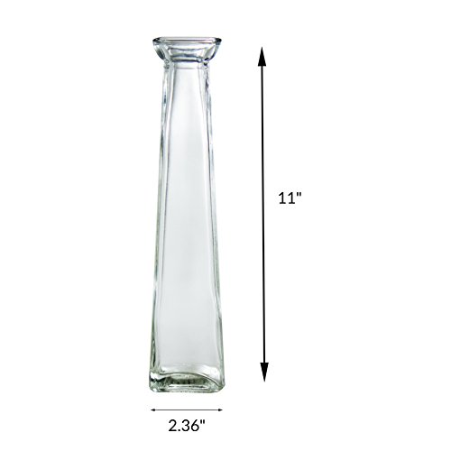 - Includes one elegant tall glass vase with a square base, tapered sides and flared rim