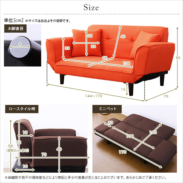 ソファ時:(約)幅144x奥79x高69cm(脚部含む)