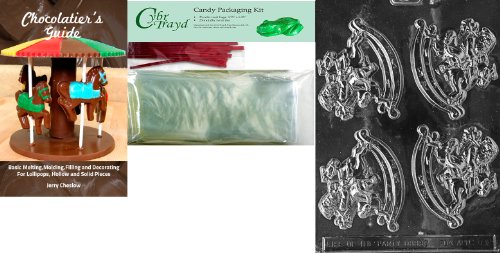 Cybrtrayd Santa on Rocking Horse Chocolate Mold with Chocolatier's Bundle of 25 Cello Bags, 25 Red Twist Ties and Chocolatier's Guide