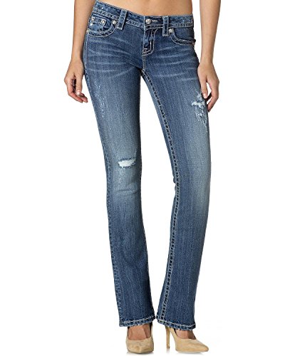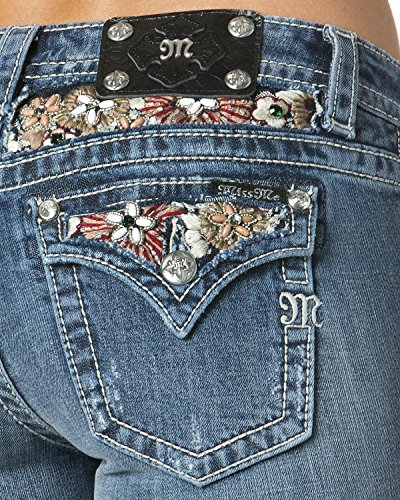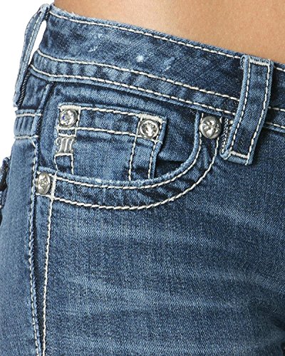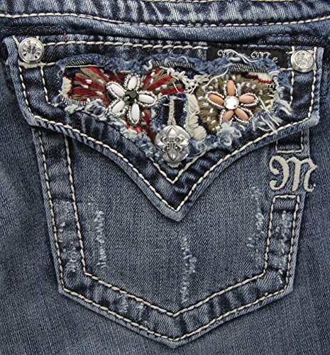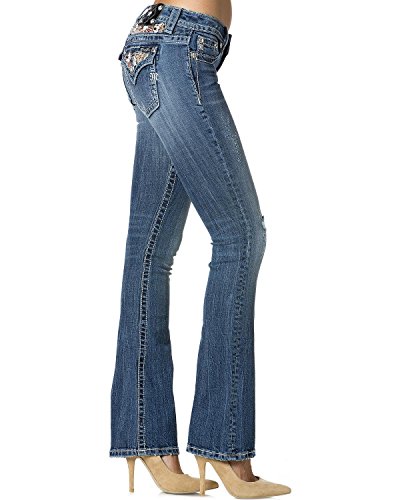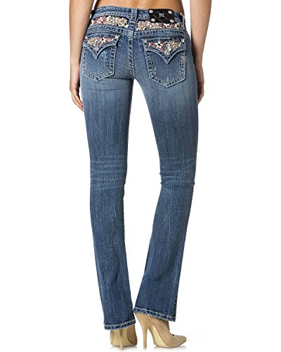 Miss Me Women's Beaded Yoke Boot Cut Denim Jean, Medium Blue, 27
