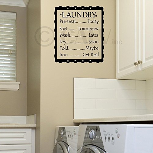 Laundry List Pre Treat..Today, Sort..Tomorrow, Wash..Later, Dry..Soon, Fold..Maybe, Iron..Get Real Vinyl Lettering Wall Decal (16.5"W x 20"H, Black)