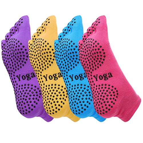 Ekouaer 5 Pairs Toe Yoga Pilates Socks Non Slip Skid Barre Sock with Grips for Women & Men