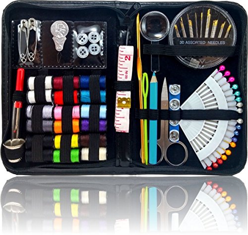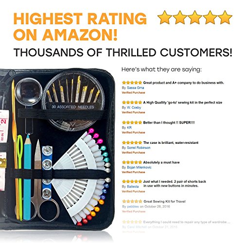 - ► RELIABLE QUALITY YOU CAN COUNT ON • Quick research of other sewing kits will show repeated complaints of cheap, often useless needles, plastic thimbles, and irrelevant items. We have made sure to bring you hands down, the best sewing kit. From our larger High Quality Needles imported from Japan, metal thimble, metal crochet hook even to the case itself being made of durable and sleek faux leather