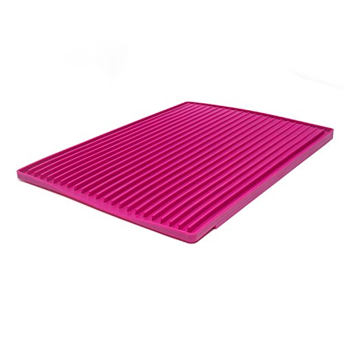 -. Feature : Self-draining troughs, can be used with over the counter or sunk-in sink / FDA-approved silicone / 21" W x 14.75" D x 0.75" H /300 + square inches of drying space / Fits all types of sinks and racks / Heat resistant up to 450°F and dishwasher safe