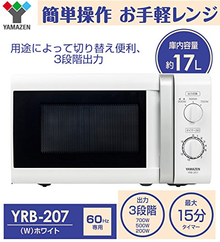 ● Voltage: 100 V (60 Hz single phase) ● Power consumption: 1150 W ● High frequency output: Warm up 700 · 500 W / thawing 200 W ● Inside dimensions: width 30.7 × depth 29.1 × height 19.1 cm ● Storage capacity: 17 L ● Turntable diameter