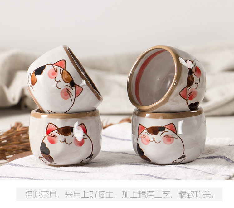日式茶水杯手绘釉下彩可爱猫咪马克杯茶杯牛奶杯子波佐见烧 ??