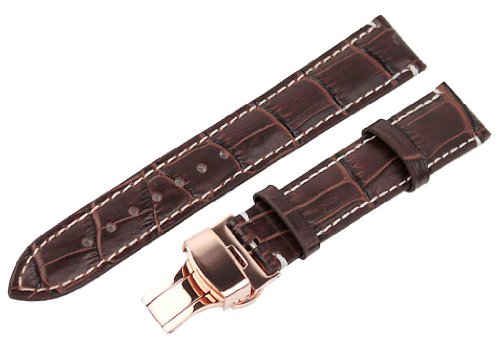 (Ritche)/Watches/Categories/DIRECT FROM USA/20mm Alligator Grain Leather Watch Band s trap Rose Gold Deployment Clasp Contras t s titch Brown