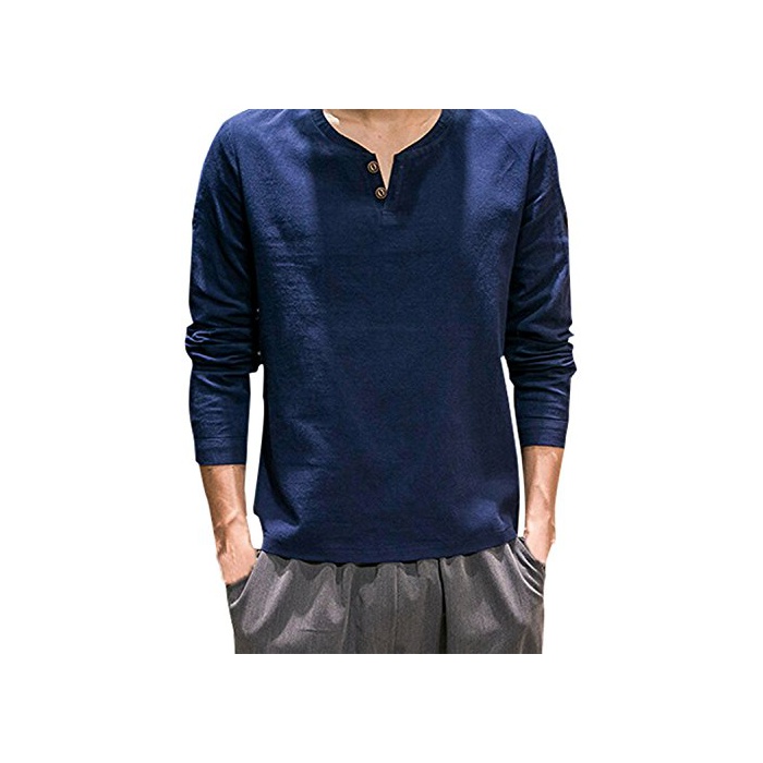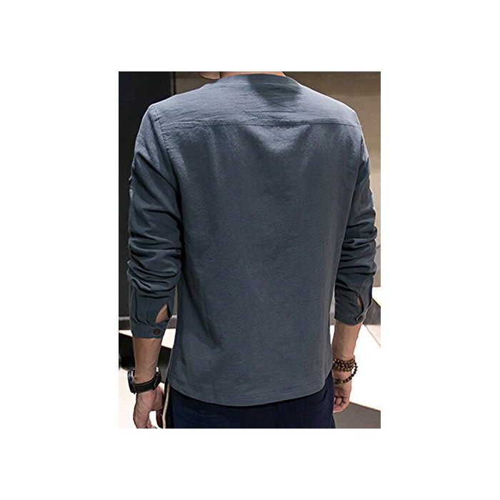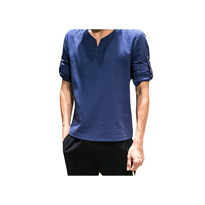 원본상품명: (アザブロ)AZBRO メンズ カジュアル Vネック 長袖 麻 無地 Tシャツ