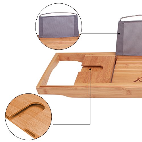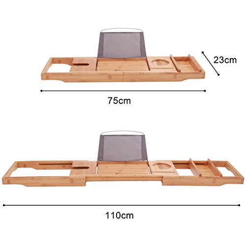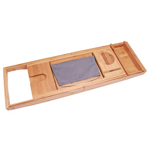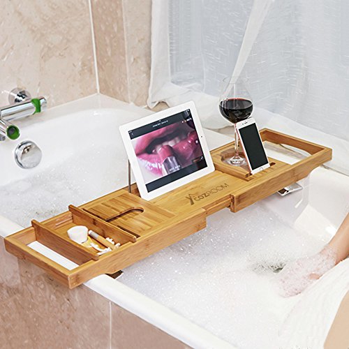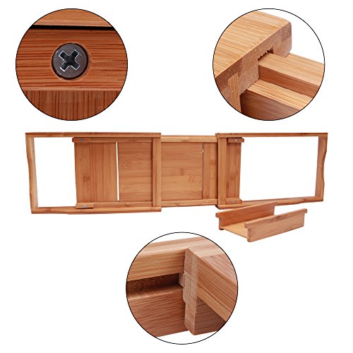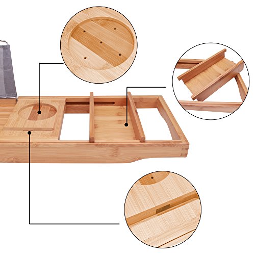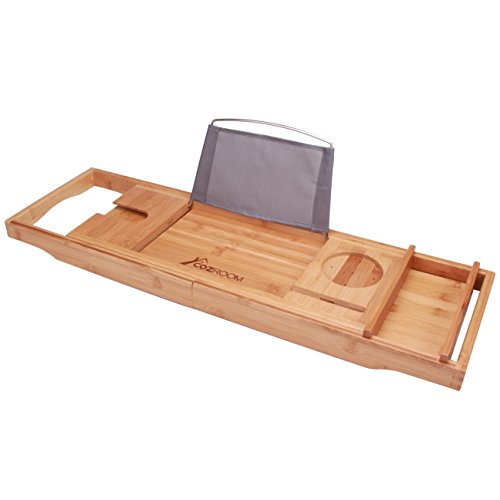 CoZroom Bamboo Bathtub Tray with Slidable Extending Sides for Phone and Other Accessories