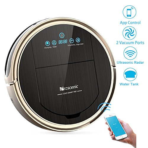 -. Title : Proscenic 790T WIFI Robotic Vacuum Cleaner, Smartphone APP Remote Control, Ultrasonic Radar, Floor Moping Robot with Water Tank & HEPA Filter for Pet Fur and Allergens