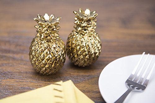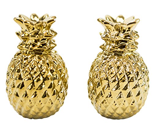 Golden Pineapple Salt & Pepper Shakers, Hand-painted Ceramic by Boston Warehouse