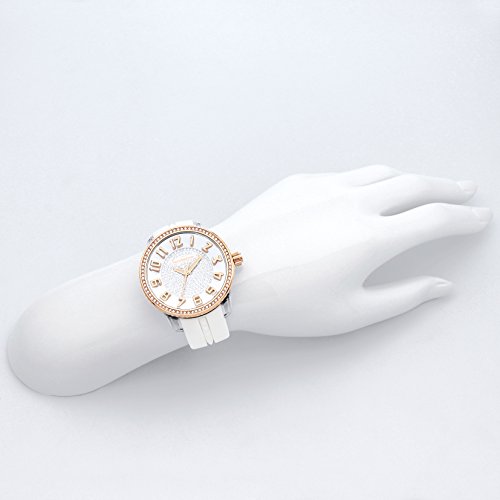 압도적인 임팩트를 가진 오버크기의 케이스와,대담한 컬러링이 인기를 얻어 있는 텐 덴《스》부터,스와로브스키가 ### 럭셔리인 모델이 등장.베젤 부분 만이 아니고, 다이얼로도 전면에 깔린 스와로브스키 크리스탈은 팔원을 화려함으로 마무리,화이트컬러와 팔 친숙함 미노 좋은 로즈 골드가,안정된 어른의 분위기를 연출.내구성으로도 뛰어나고, 가벼워 착용감이 좋은 실리콘 스트랩은,크기조정이 불요 (이므로)그래서 선물로도 최적인 걸작품입니다./10기압 방수/스와로브스키 크리스탈/팔 주위(최대) 약22cm