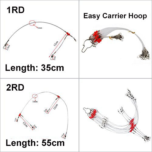 -. Binding : Misc. -. Brand : JL Sport -. Color : White -. Feature : 2. Made of high-strength and abrasion resistant nylon, which with high quality snap to catch more bigger fishes / 3. Fishing leader: 60cm/30cm and arms for per: 9.5CM. Main leader tested is about 23KG=55LB and double drop arms tested are about 12.5KG=30LB / 4. Using for Fishing Lure Spinner/minnow/poper/crankbait/metal spoons/sharp hook/hard lures / 5. Long enough to fish pike/salmon/bass/shad/herring/muskie/crucian/pickerel/snapper in the saltwater/lake/river and sea -. IsAutographed : 0 -. IsMemorabilia : 0 -. Label : JL Sport -. Manufacturer : JL Sport -. ProductGroup : Sports -. ProductTypeName : SPORTING_GOODS -. Publisher : JL Sport -. Studio : JL Sport -. Title : Easy Catch ® 12 Pcs Fishing Leaders 23KG/55LB Tested Nylon Fishing Wire Rigs Leaders Trace with Snaps, Swivel, Red Beads, Arms for Freshwater/saltwater/lake/river Fishing. Using for Fishing Lure Spinner/minnow/poper/crankbait/metal spoons/sharp hook/hard lures