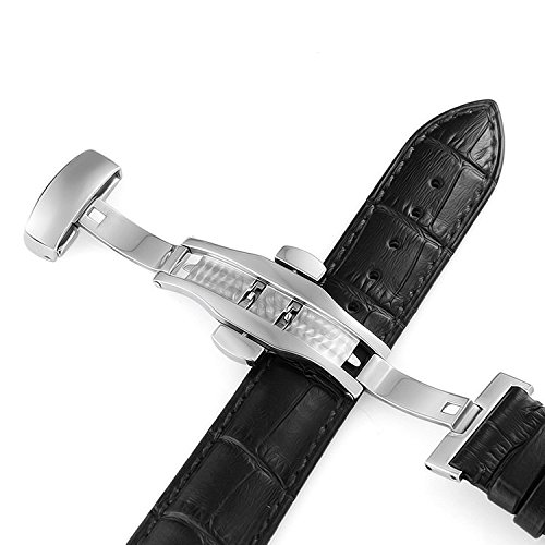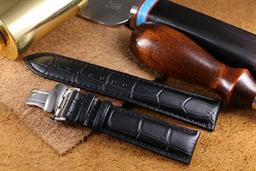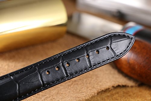 -. Title : 12-26mm Black Luxury Deluxe Leather Watch Bands Straps Replacement Alligator Grain Genuine Italian Leather Deployment Buckle