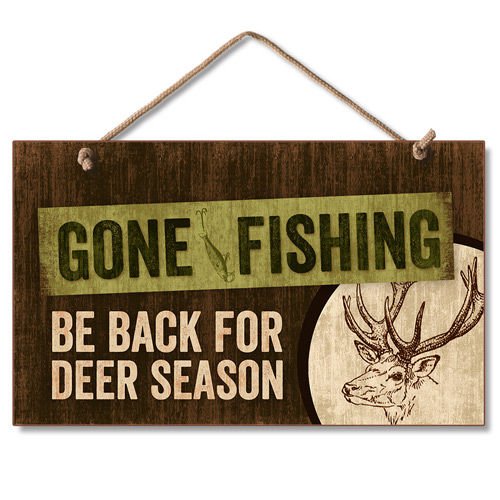 Rustic Country Gone Fishing Man Cave Hunting Sign Wall Decor Plaque