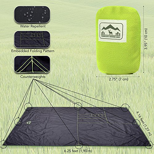 “Pocket Blanket” (Traveler's Ground Sheet) for Hiking, Camping, Beach and Picnic - Water Resistant, Compact Storage Pouch, Weights 5 oz., Measures 6.25 x 4.16 feet