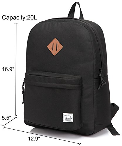 -. Feature : 1.The lightweight backpack is made of durable water resistant Polyester.It weights 0.36kg only.Featuring its classic silhouette,the convenient and comfortable pack is great for everyday use. / 2. The basic backpack has one top-loading compartment for storing the majority of your gear books and notebooks. Main zippered compartment with file divider,fully padded back and shoulder straps for ultimate comfort,front exterior easy access zipper pocket is for your pens, highlighters. Two water bottle pockets on both sides for drinks. / 3.External dimensions: 16.9"x12.9"x5.5"(HxLxW);Capacity:20Liters;External pocket :9.5"x1.6"x7.3"; Weight:0.36KG. / 4.This lightweight classic backpack holds all of your essentials and more. Adjustable shoulder straps to ensure the comfort,the pulls on the zipper allows it to slide easily and smoothly.The material of the backpack is soft and light,you could fold it in your lage while traveling. / 5.With One year warranty,you could buy Vaschy products with confidence.The Vaschy basic backpack is a ultra lightweight simple backpack suitable for those who like casual. Its durable material is recommended for daily use,day-trips,traveling,hiking.school,camping.