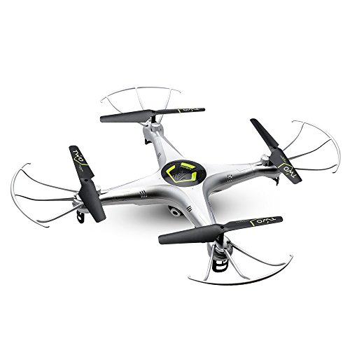 Protocol's Dronium Two RC Drone with HD Camera sets the standard for performance, versatility, and value for pilots entering the new world of aerial video photography! Motion sensitive auto-stabilizers provide rock solid control and precision in flight. Dronium Two is easy to maneuver expertly and can even perform banked turns and 4-way 360° flips on command! With the controller's built-in LCD screen and audible flight signal tones, pilots of all skill levels can make precise in-flight adjustments with ease. Its on-board camera records high definition images and video and is controllable up to 150 feet away. Best of all, Dronium Two is built tough with crash-resistant blade guards for added protection. (Spare propellers are included though, just in case you need them).Feature
