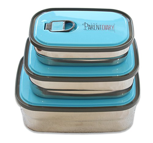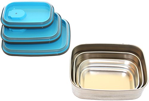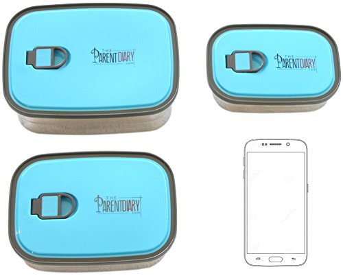Stainless Steel Lunch Box with leak Proof Lid, Food Storage Containers, BPA Free and Non Toxic (Set of 3 in 1) - Color Blue