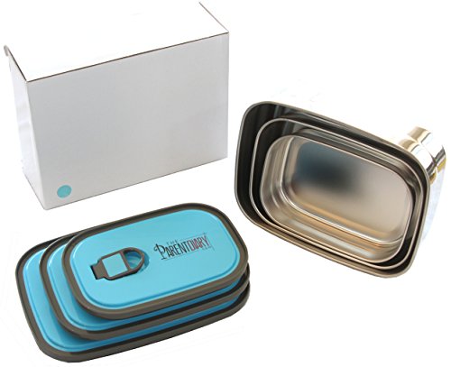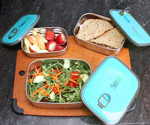 - NEVER WORRY ABOUT SPILLAGE AGAIN – Our food-grade stainless steel lunch box set has an extra-durable no-leak silicone linings and super easy-open clips on each size container