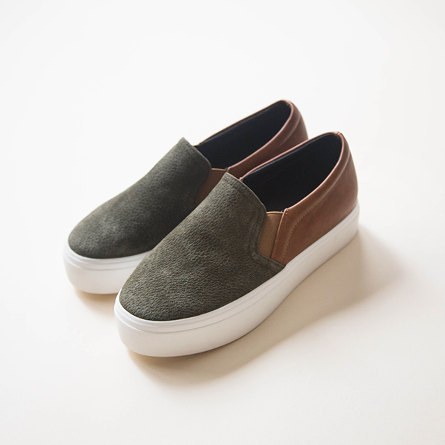 Gray suede Two-tone slip-on 2color Women's sneakers Peak height Fall khaki