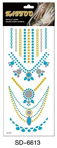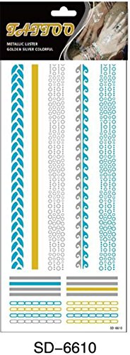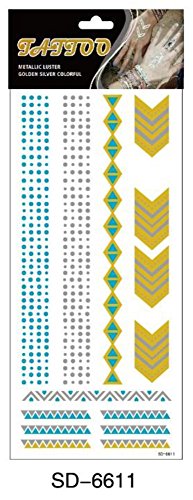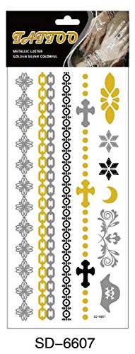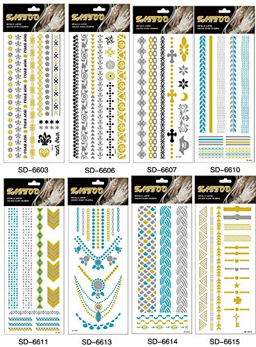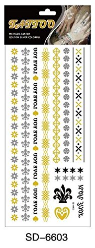 Adecco LLC 8 Sheet Hot Flash Metallic Waterproof Temporary Tattoo Gold Silver Tatoo Women Henna Flower Taty Design Tattoo Sticker