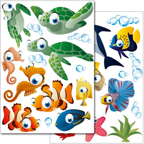 Wandkings wall stickers Underwater Ocean World Sticker Set - more than 25 stickers on 2 US letter sheets (each 8.3 x 11.7 inch)