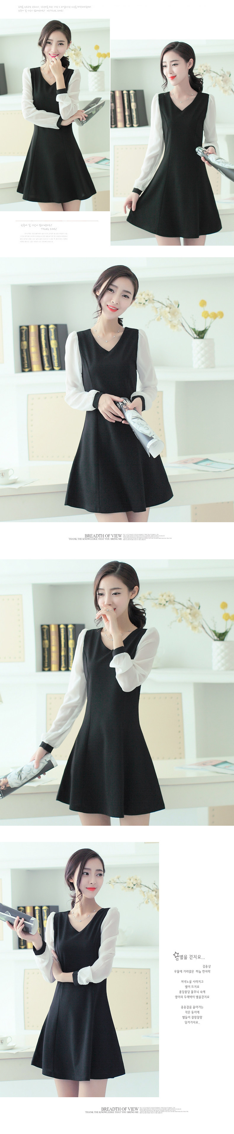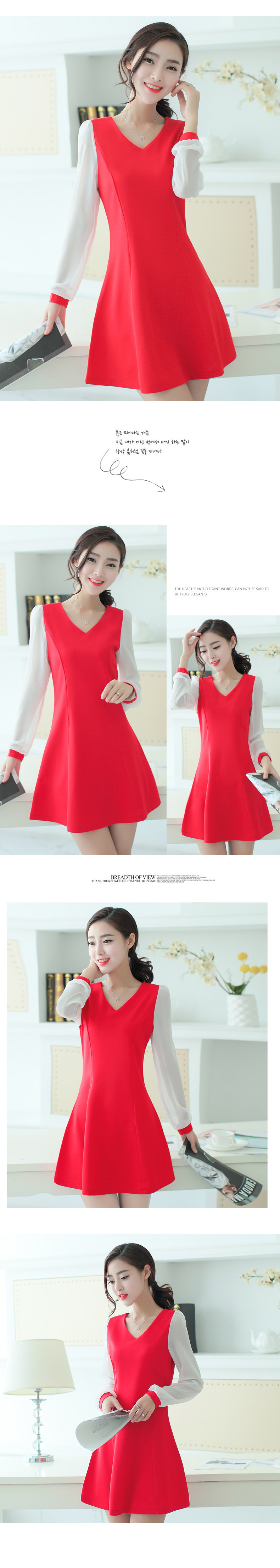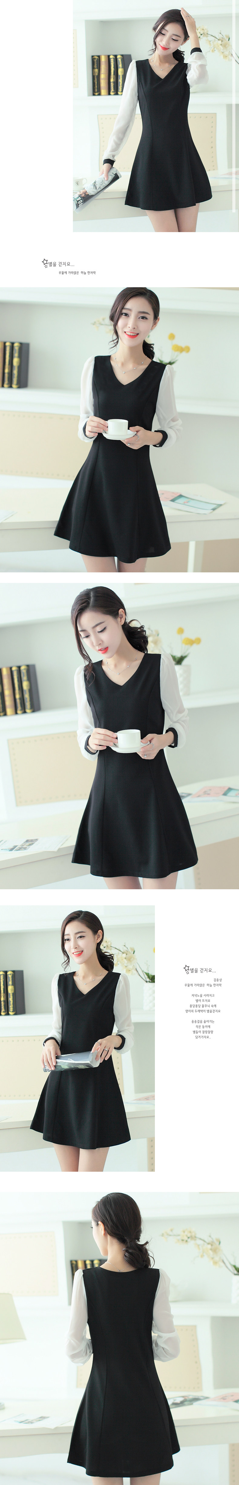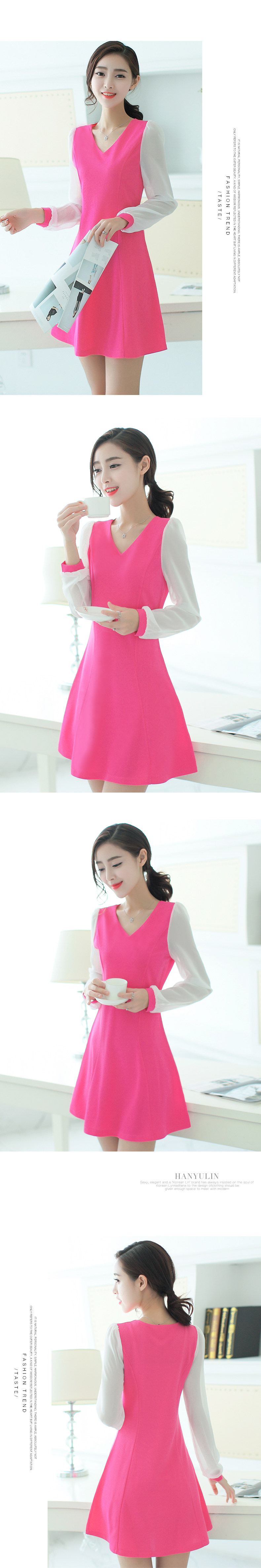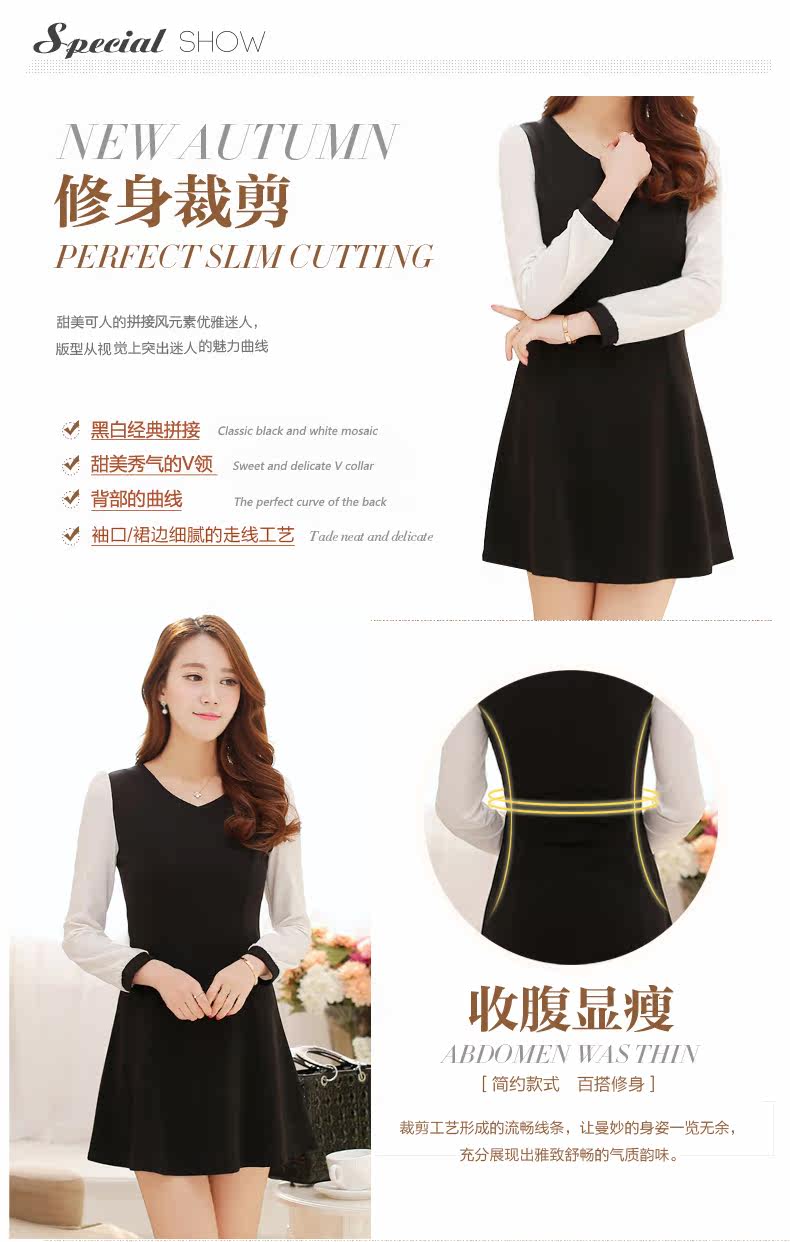 漫娜儿2017春装新款长袖雪纺拼接黑色大码韩版修身连衣裙大码女装