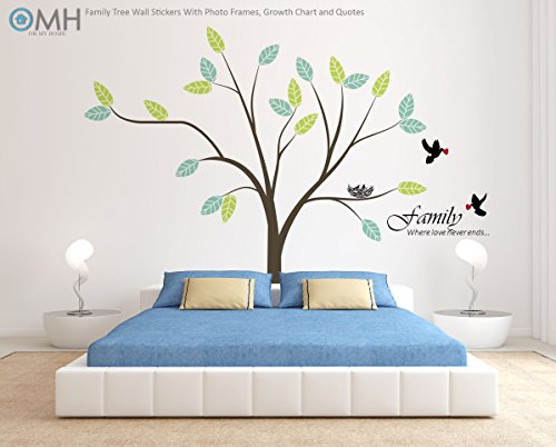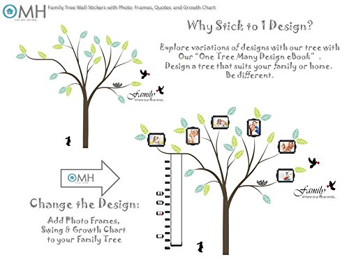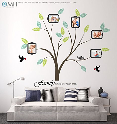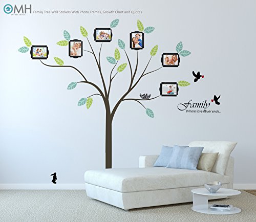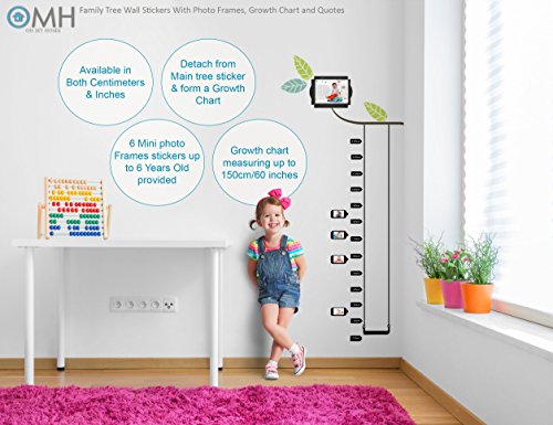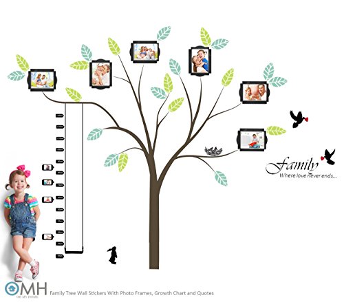 OMH OH MY HOME LARGE FAMILY TREE WALL DECAL WITH PHOTO FRAMES, LOVE QUOTES & GROWTH CHART.
