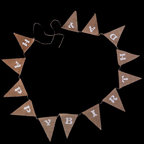 - Color: White, brown. - Material: Burlap. - Each flag size (L * H): Approx. 16 * 13cm / 6.3 * 5.1 inch - Total length: Approx. 3m / 3.3 yd - 13 flags with HAPPY BIRTHDAY print on them. - Perfect for birthday party decoration. - Best for both house decoration or fixed on trees etc. Package Including 1 * Hessian bunting (13 flags) 0