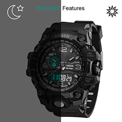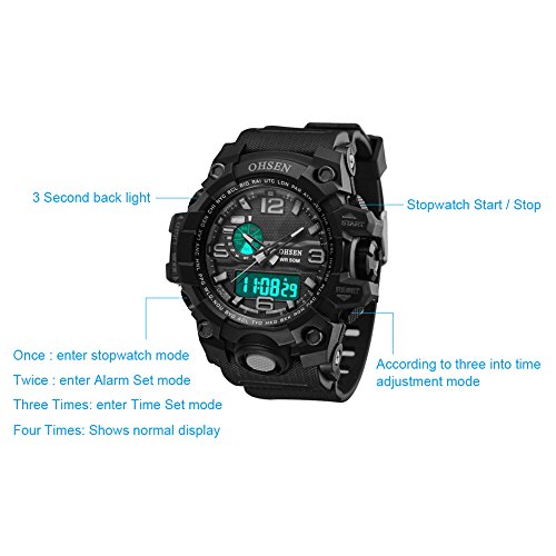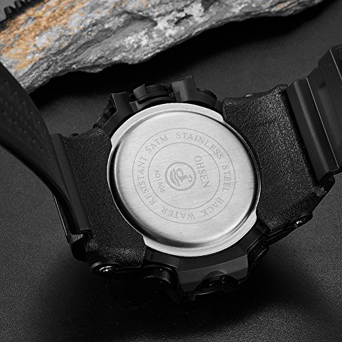 -. Feature : Japan original installation import pointer quartz movement and the inside of chips, this outdoor waterproof watch was just made with high level and good material. Very convenient and good fit for your sports, work, school and leisure time / This Outdoor & Sports Watch come with date and time display, color display features.Equipped with time and date mode, alarm mode, stopwatch mode, second-time mode and display two times, and glow-in-the-dark function.Soft silicone strap and very comfortable to wear, never make your hand feeling uncomfortable / 50M water-resistant and fashion watches for women and men, girls and boys. There is no need to take off the watch while swimming or taking bath. Durable using life with high level watch's chip. It is very gift for your friend, family, sister , brother and boy friend.Easy to set up and free to wear like a cool man or boy / Solid stainless steel back cover sports watch. Water resistant. Shock Resistant, suitable for a both outdoor and indoor sports, such as running, climbing. LED background light(5 second),LCD display,make you can see the screen day and night / 100% Brand New and High Quality.Water resistant (You can swim and take a shower with wearing it(In addition to a hot bath), but please don't press any keys when underwater, or it will stop its normal functioning).The glass is made from the highly clear resin material imported abroad and sealed with the case by high frequency machine. So that the glass is extremely hard and pressure-tolerant