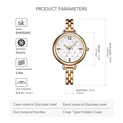 -. Feature : ★CLASSICAL WOMEN WATCH: Special designer watch with Japanese quartz with analog display for beautiful ladies, styles: luxury, trend leisure, casual, elegant and others for any clothes. / ★HIGH QUALITY HARDLEX DIAL: Water resistant to 30meters with stands splashes or brief immersion in water.But not suitable for long time swimming. / ★UITRA THIN CASE: Durable and lightweight case and different color watch stainless steel strap with buckle closure. The clasp is easy to put on and take off. / ★ROUND CASUAL WOMEN WATCH:The watch features with some crystal diamonds on the watch band, the color is very elegant that is go with many outfit. / ★AMAZING GIFT: Perfect gift for your mom, girlfriend, little girls, wife and other women. Also it's suitable for any parties, business meeting, or daily life.