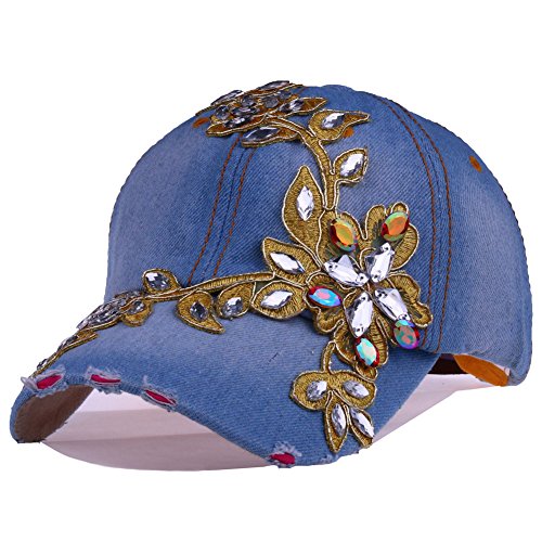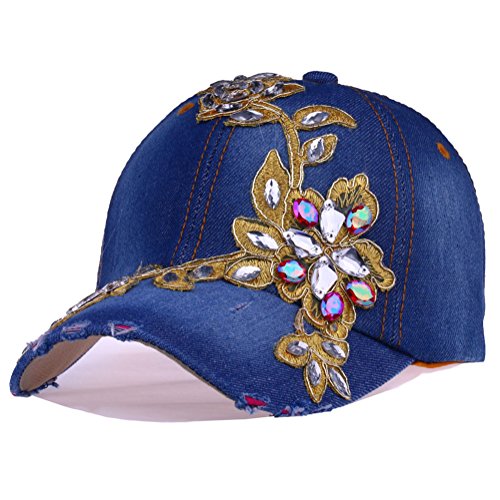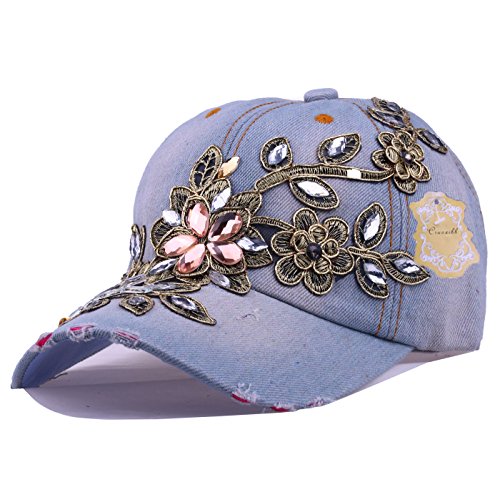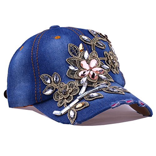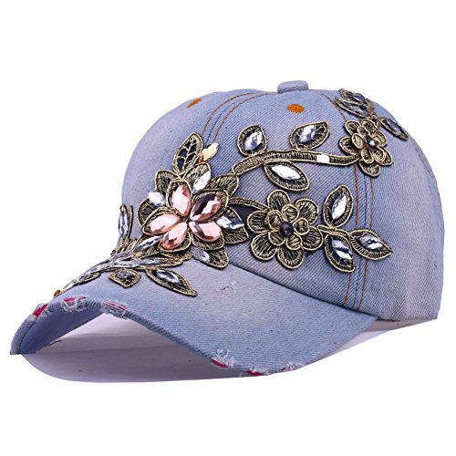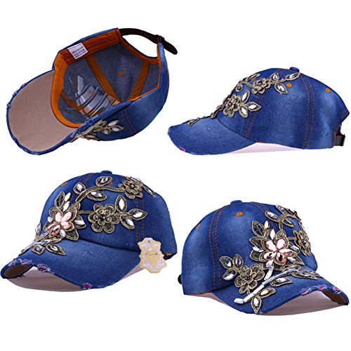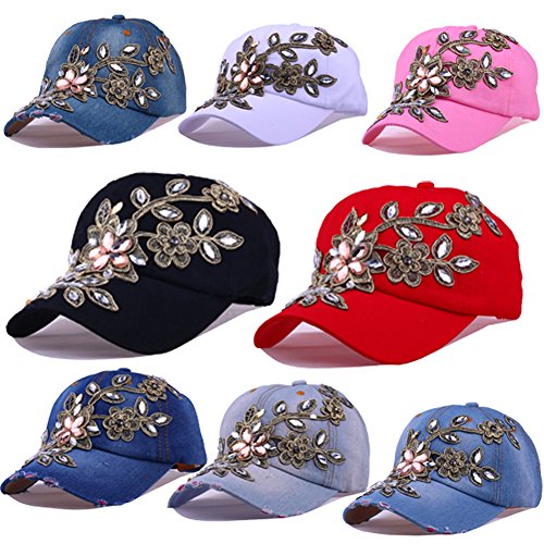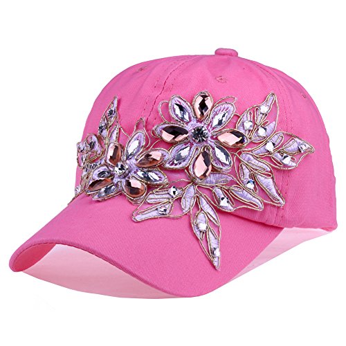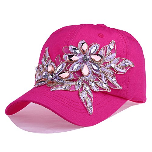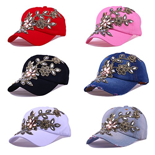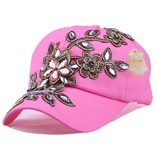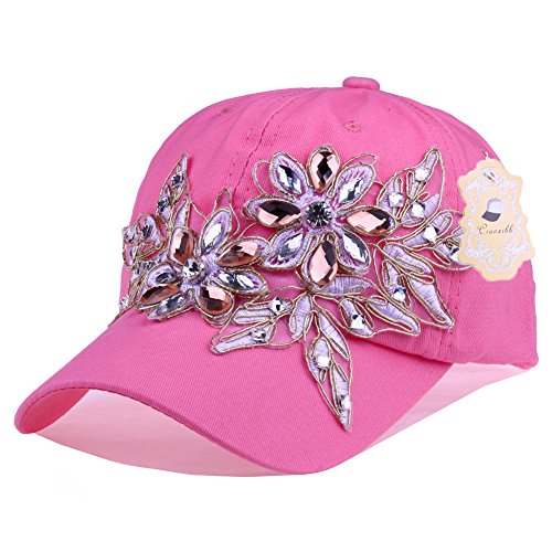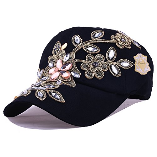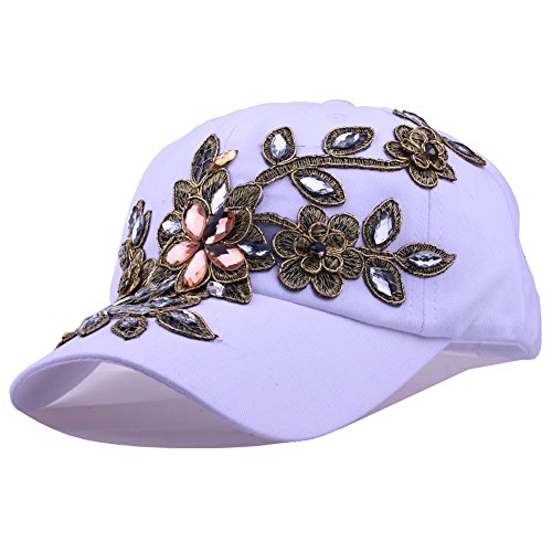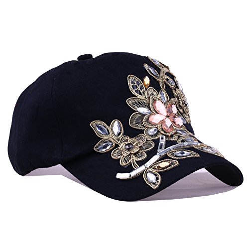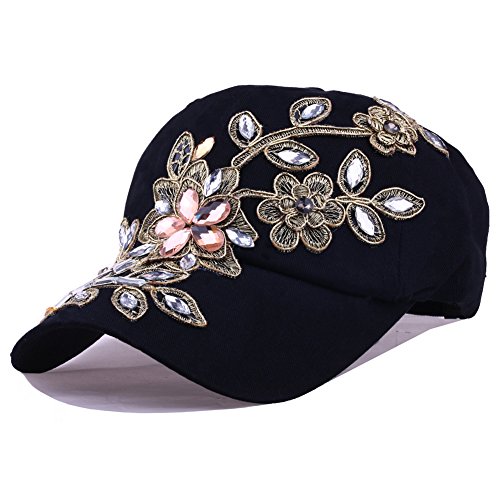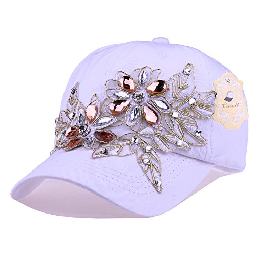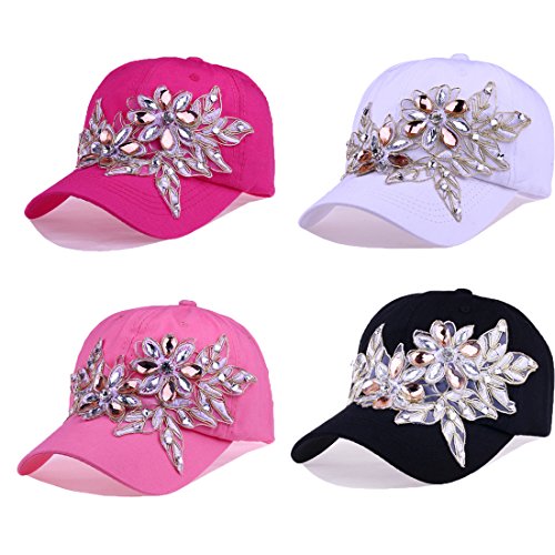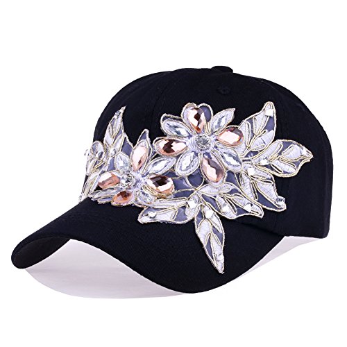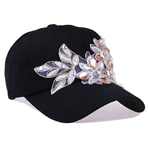 | CRUOXIBB Women Cotton Cap Rhinestone Flower Fashion Baseball Hat |