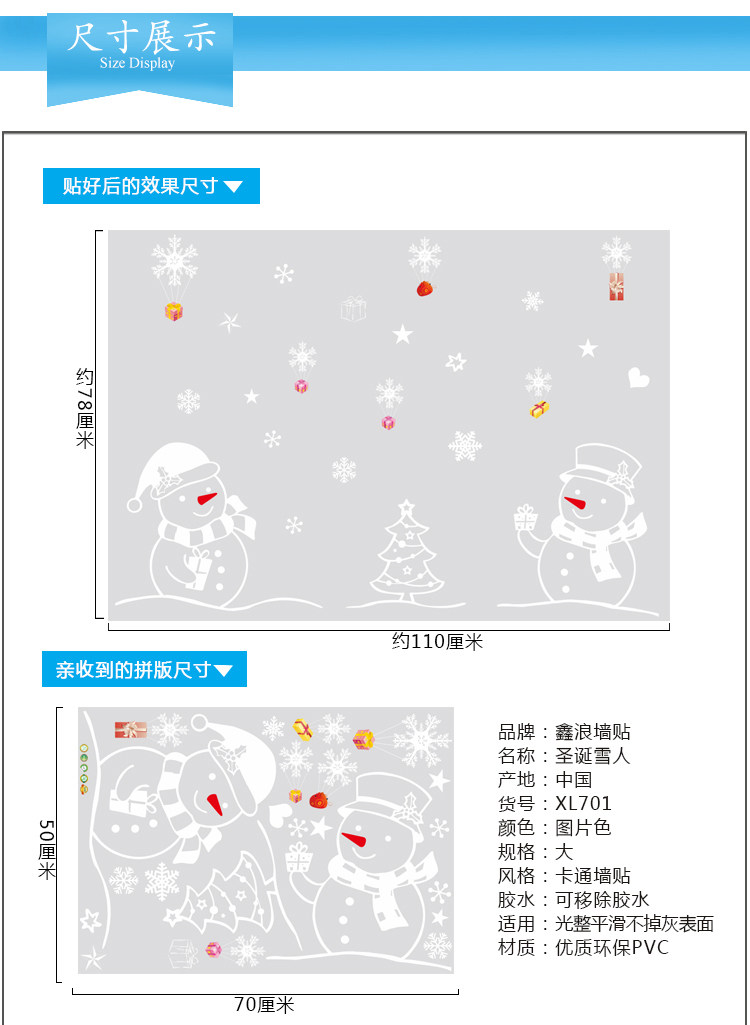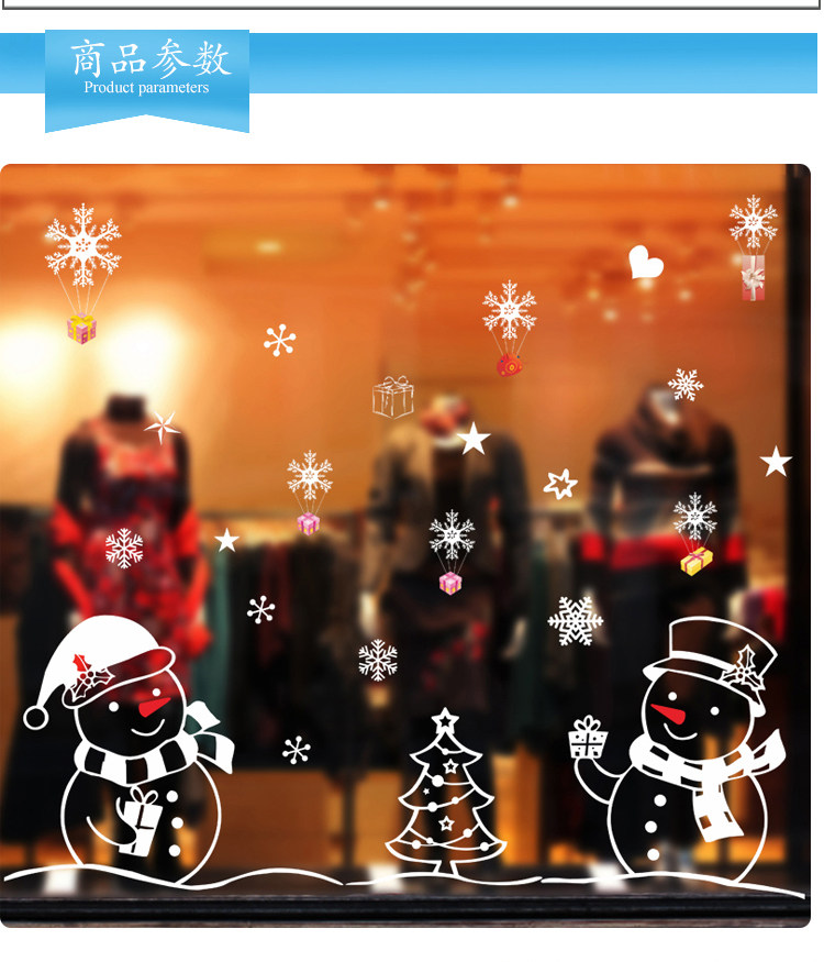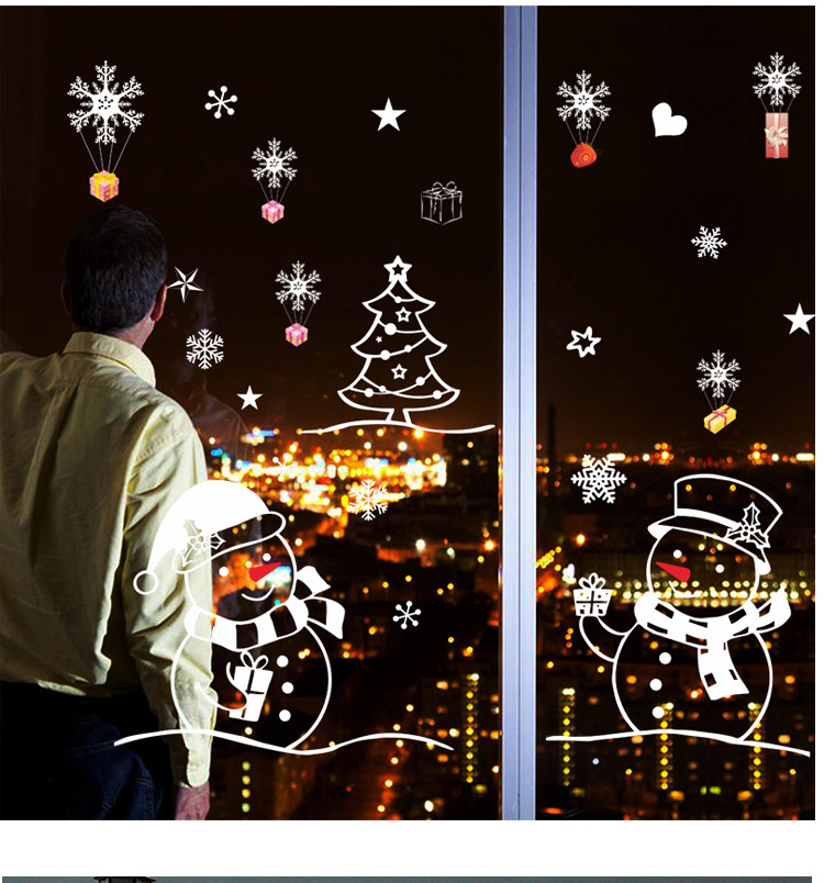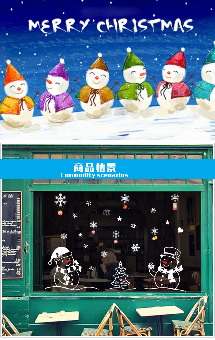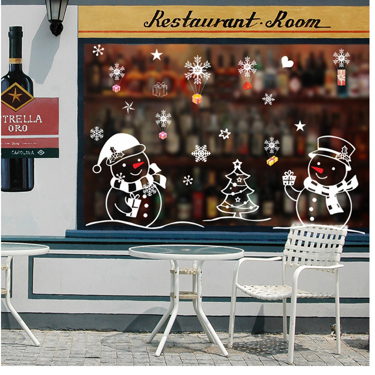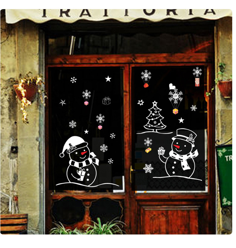 商场店铺橱窗玻璃门贴圣诞节雪人雪花装饰品店铺场景布置窗花贴画