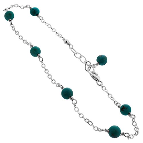 -. Title : Gem Avenue Sterling Silver Turquoise Simulated Stone Adjustable Anklet