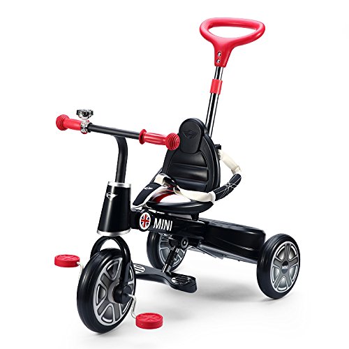 -. Binding : Toy -. Brand : MINI Cooper -. Color : chill red -. Department : kids tricycle -. EAN : 6930751309784 -. Feature : Mini Tricycle Bike 10" Folds, and easy to carry . / Officially licensed Mini cooper style tricycle in a fun and engaging three-wheeled design / Kid-friendly features: easy-grip handlebars, extra-large foot pedals, and a wide, stable wheelbase / Super comfortable seat for smooth riding on the go / Push handle included for parents to help kids learn how to ride -. IsAdultProduct : 0 -. IsAutographed : 0 -. IsMemorabilia : 0 -. Label : Rastar Group -. Manufacturer : Rastar Group -. MPN : 暂无 -. PackageQuantity : 1 -. PartNumber : 暂无 -. ProductGroup : Toy -. ProductTypeName : TOYS_AND_GAMES -. Publisher : Rastar Group -. Size : medium -. Studio : Rastar Group -. Title : Mini cooper Tricycle Bike 10" Folds