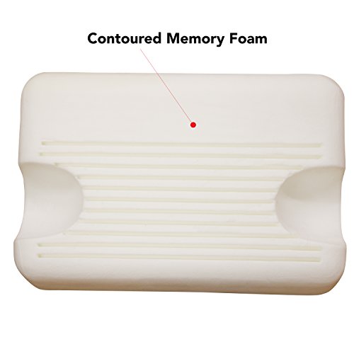 - Feature : Contoured Memory Foam for head, neck and shoulder support / Pressure-free mask area for comfort / Soft velour knit cover with built-in tether to reduce hose drop / Designed for use with CPAP, BiPAP and APAP Machine / Plush velour knit cover has a zippered closure which is removable and washable